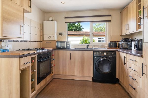 A beautifully presented two bedroom park home situated on the popular park home site Waterside Orchard. Set on a delightful wrap around plot, with refitted and stylish shaker style kitchen, generous lounge and conservatory.