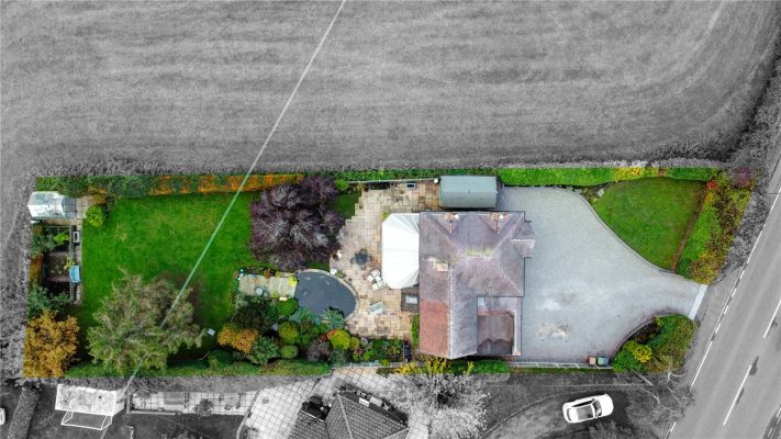 Outside, the property enjoys a beautiful block-paved courtyard surrounded by an extensive range of outbuildings, including multiple garages and useful storage sheds. A sweeping driveway wraps around the home, providing ample offroad parking for numerous vehicles. Beyond, the grounds extend to a large plot with a range of mature gardens, featuring a variety of established trees, shrubs, and a large picturesque patio area with fish pond.