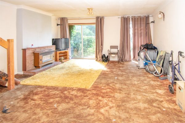 *Lounge with stairs rising to the first floor, gas point for fire, window to the rear and patio doors to the garden.