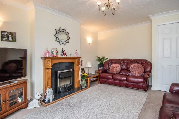Sitting room which has a wall-mounted electric fire, a bay window looking out to the front and a door to the,