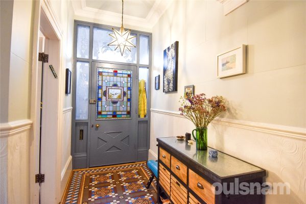 * The property is entered via an enclosed vestibule which immediately sets the tone for the character and craftsmanship found throughout the home. Beyond the vestibule, a striking entrance hallway showcases a wealth of beautifully preserved period features. The eye is instantly drawn to the exquisite Minton tiled flooring, rich in colour and intricate in design, which flows gracefully through the space. The stairs rises to the first floor with an elegantly crafted mahogany banister which forms a central focal point. High ceilings enhance the sense of space, and stained glass detailing allows natural light to filter through, adding colour and character to this impressive introduction to the home.