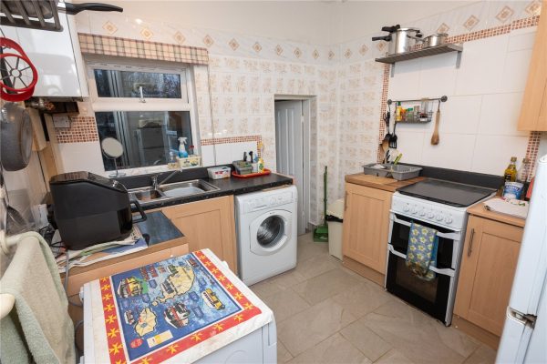 The breakfast room has a fire surround and mantel with fitted gas fire, original crockery store, fitted base units and wall mounted storage and access is given to the kitchen which has a range of panelled base and drawer units with inset sink unit, matching wall units, spaces for cooker, fridge/freezer & washing machine, tiled splash backs & floor, door to the rear garden and door to the downstairs w.c. with white suite.