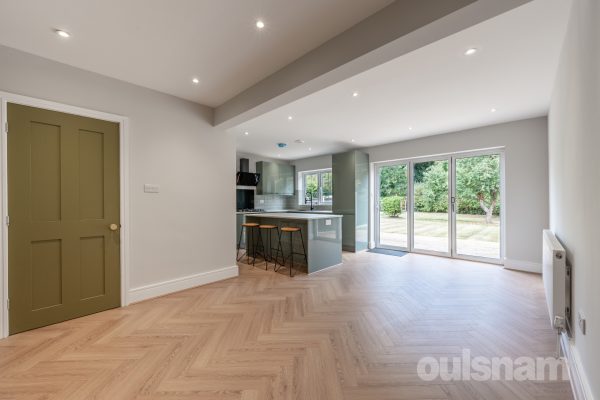 -Open plan lounge diner with dual aspect to front and with patio doors to the rear garden.