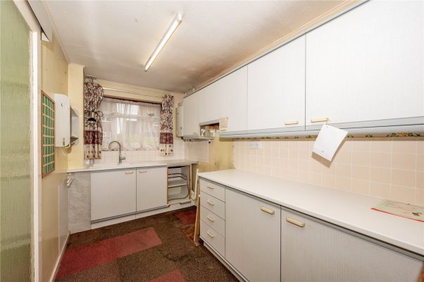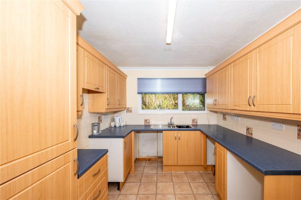 * Kitchen is fitted with a range of wall and base units, one and half bowl sinks, tiled flooring and space & plumbing for a washing machine, oven and dishwasher. There is a double glazed window to the rear.