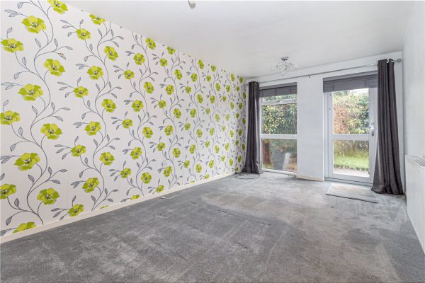 Outside, there’s a private rear garden that’s mostly laid to lawn, with a patio area perfect for a table and chairs. The garden is fully enclosed, making it a safe space for children or pets. The path leads around to a side gate with direct access to the driveway at the front, which offers parking for two cars.£52,500