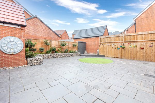 There is a well-maintained front garden and gated side access leading into the enclosed low maintenance rear garden, enjoying a private aspect. The patio area provides an ideal space for alfresco dining, with steps leading up to the artificial grass lawn and planted borders. There is a further storage area behind the garage.£420,000