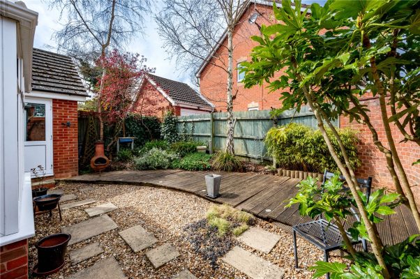 The enclosed rear garden has an initial patio area perfect for sitting out in the summer months, a central lawn with borders to edge. There is a timber built bar and an further area perfect for entertaining. There is a single gate from the rear garden giving access to the front of property.