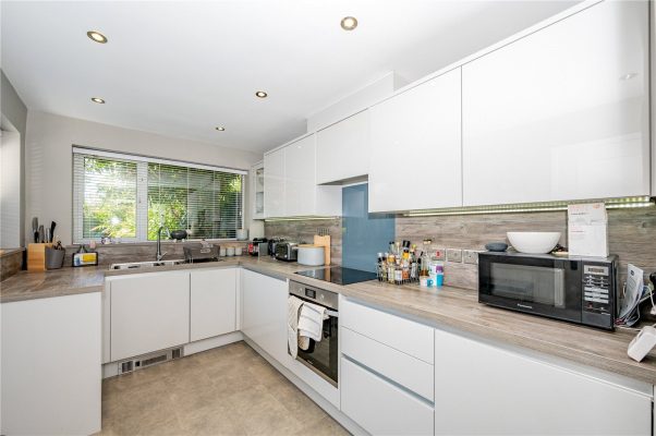 A further door leads into the beautifully appointed kitchen/diner, which benefits from French doors opening onto the rear garden. The kitchen is fitted with a range-style oven, fridge freezer, integrated dishwasher and microwave, along with space and plumbing for a washing machine and tumble dryer.