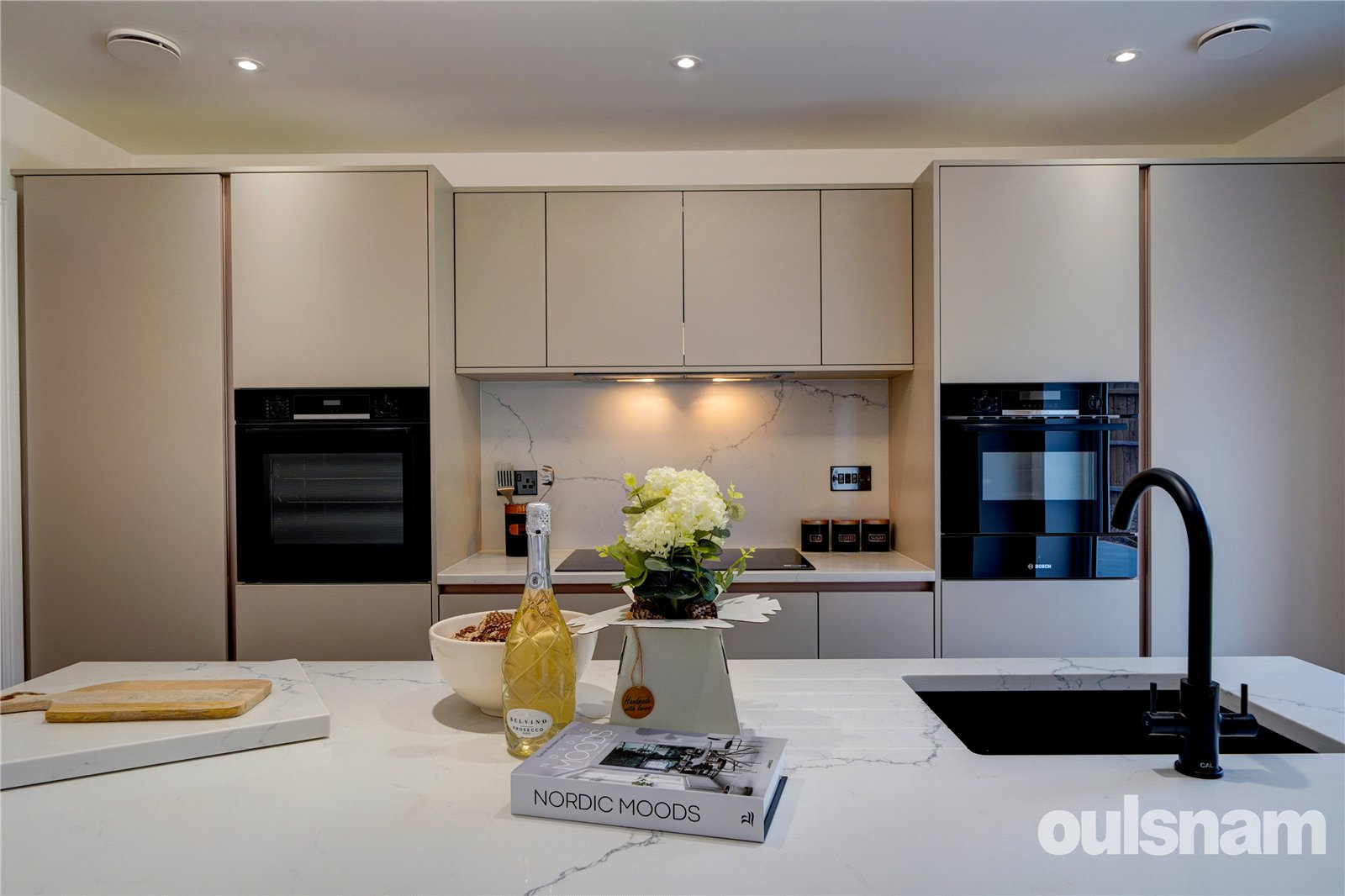 The fitted kitchen supplied by Stone and Earth with Quartz Work surfaces and offers a sleek and contemporary design, with high-quality cabinetry, integrated appliances, and excellent worktop space,