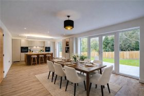 A stunning and light open plan space with large double glazed doors which lead to the garden this room really forms the heart of the home, perfect for modern family living and entertaining.