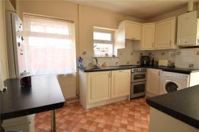 * Kitchen diner is fitted with a range of wall mounted and base units with space for freestanding appliances, built in storage cupboard with shelving, breakfast bar area, wall mounted gas central heating boiler and door leads into the conservatory