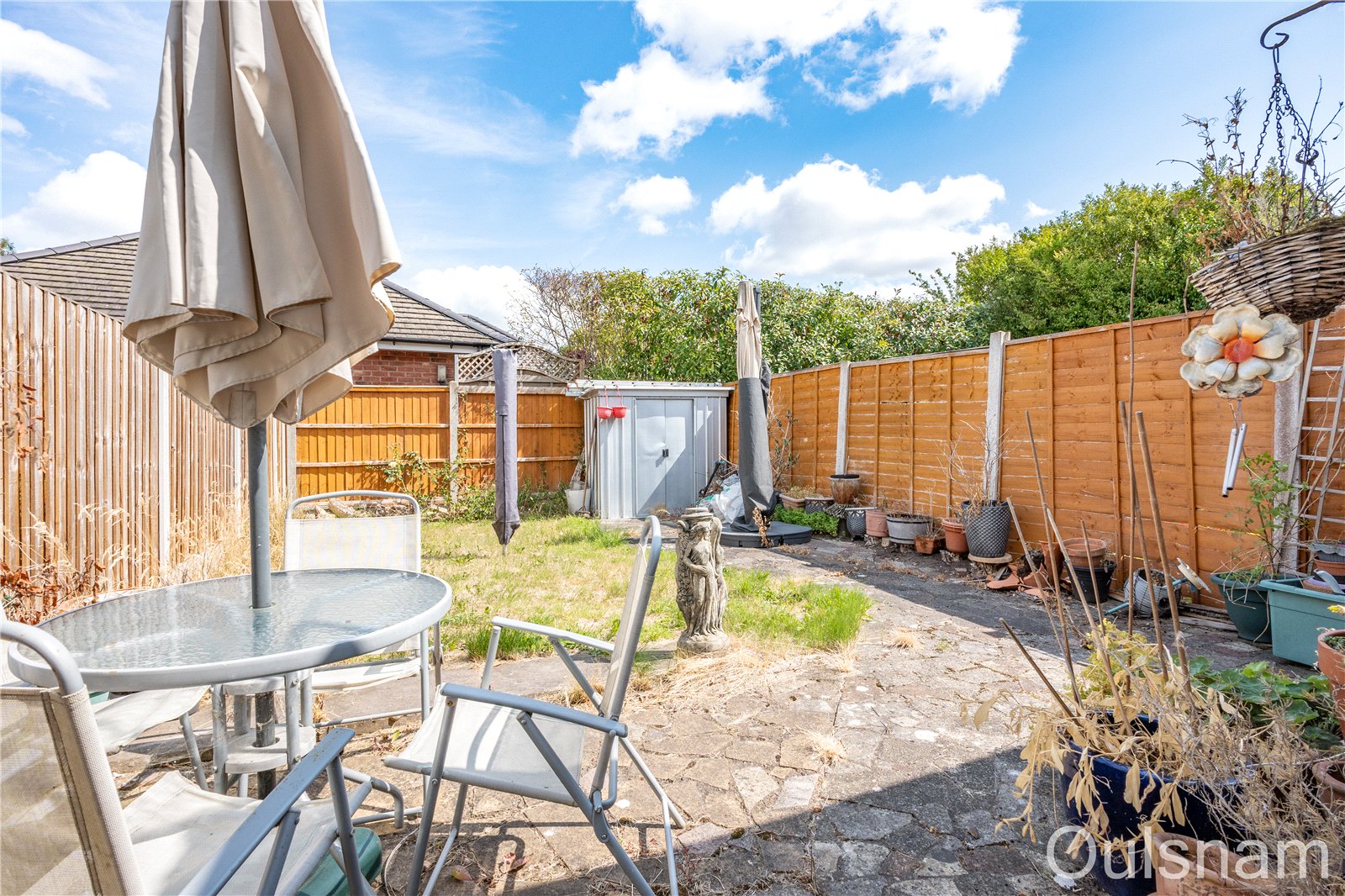 Rear garden is accessed via the sliding doors in the conservatory and has a paved and lawned area