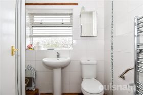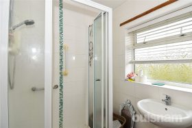 * The Shower room is neatly arranged and functional, featuring a shower cubicle, W.C., and freestanding wash hand basin.