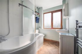 The first floor accommodation enjoys three bedrooms, all serviced by a family bathroom.