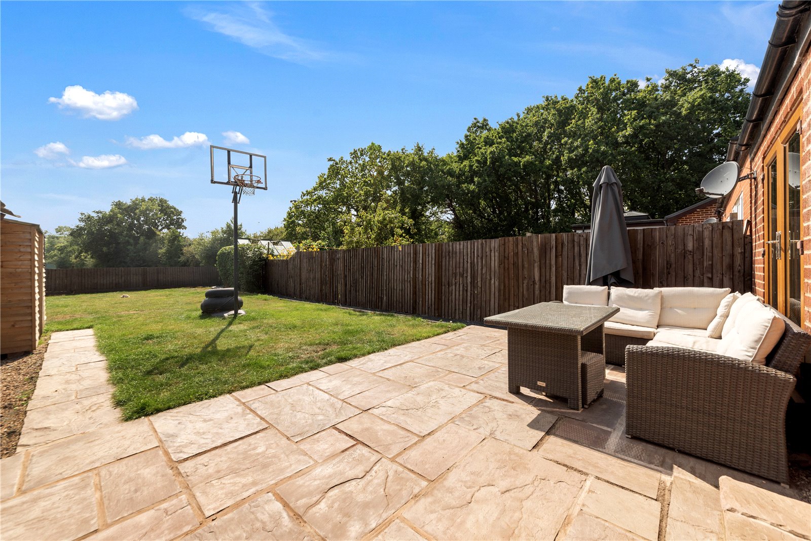 The rear garden offers a large patio area which extends across the rear of the property, perfect for entertaining and alfresco dining. The remainder of the garden is mainly laid to lawn and is enclosed by wooden panelled fencing.