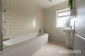 To the first floor, the landing provides access to a two double bedrooms, one with bay window and the third which is a good single. A modern family bathroom is fitted with a white suite including WC, wash hand basin and bath with shower over.