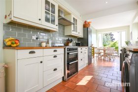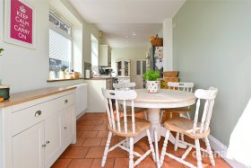 * A spacious, modern style kitchen diner which has been extended and has a range of wall and base units, tiled flooring and ceiling spotlights. Dining area is duel aspect and has French style doors both opening out onto the rear garden