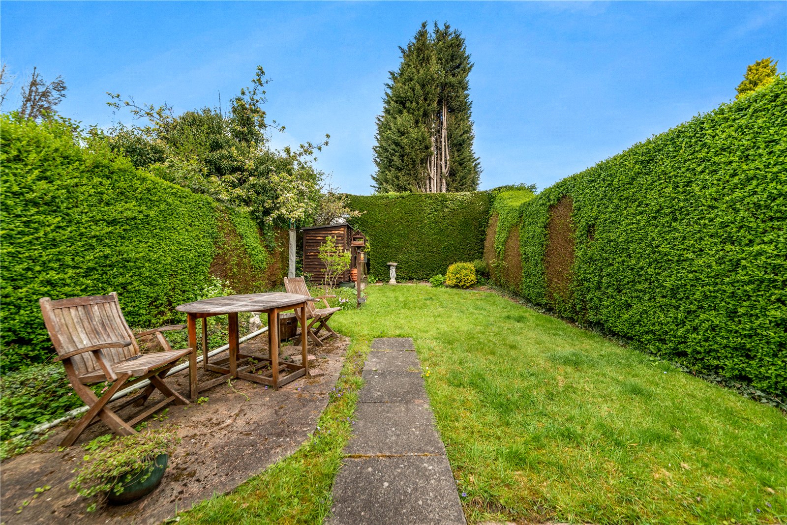 Externally, the rear of the property boasts a private and established garden, featuring an initial patio seating area, with the remainder mainly laid to lawn, bordered by mature planting, ideal for those seeking a peaceful outdoor space with further scope for landscaping.