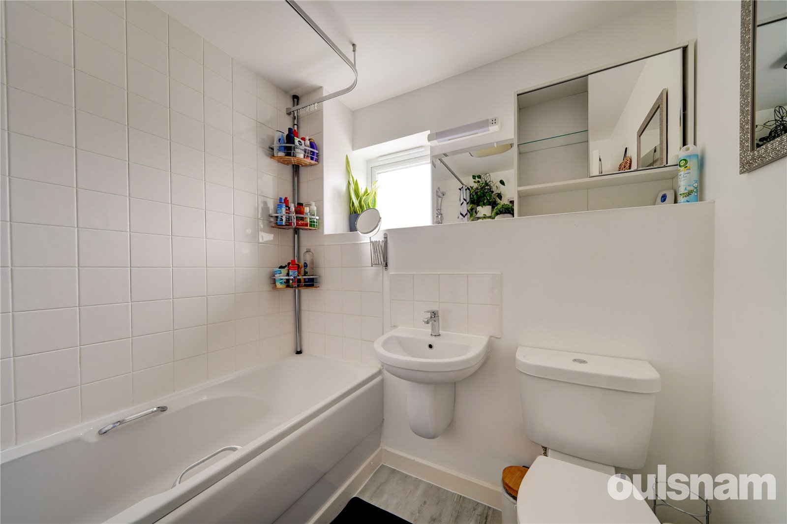 * Contemporary style family bathroom comprises wc, wash hand basin and a bath with shower over