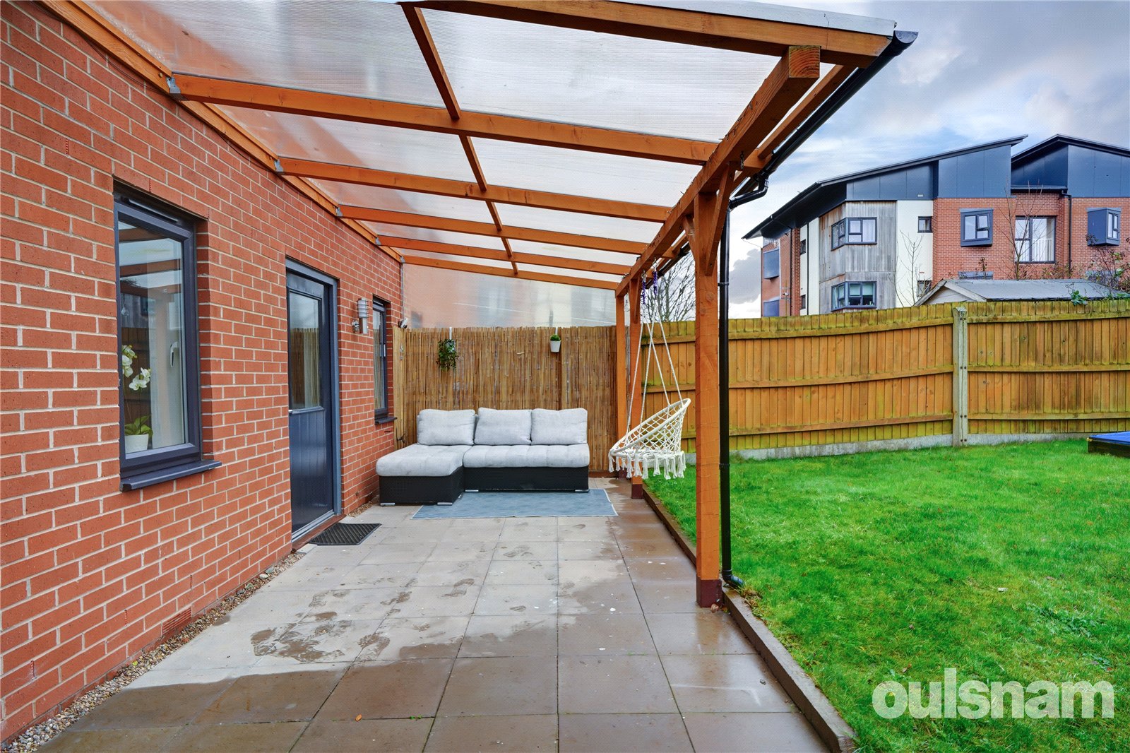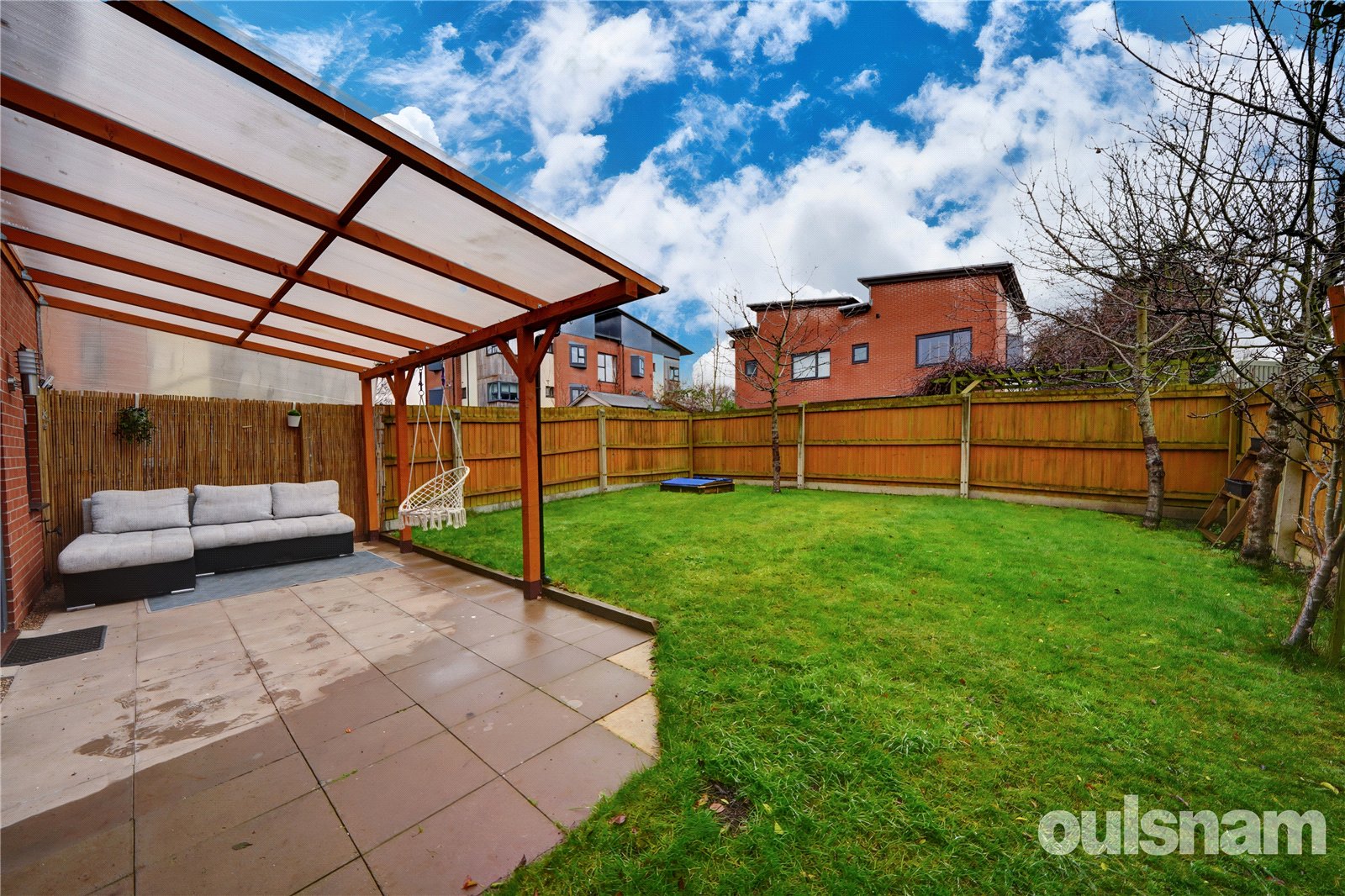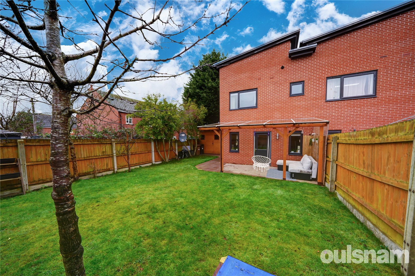 * The rear garden is accessible from the lounge diner and side gate, with a generous patio area with timber framed verandah, being mainly laid to lawn with mature trees and a large shed