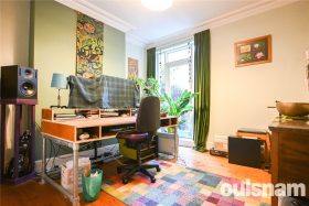 * Two reception rooms, front reception room is bay fronted with high skirting boards, coving, ceiling rose and exposed wooden floorboards