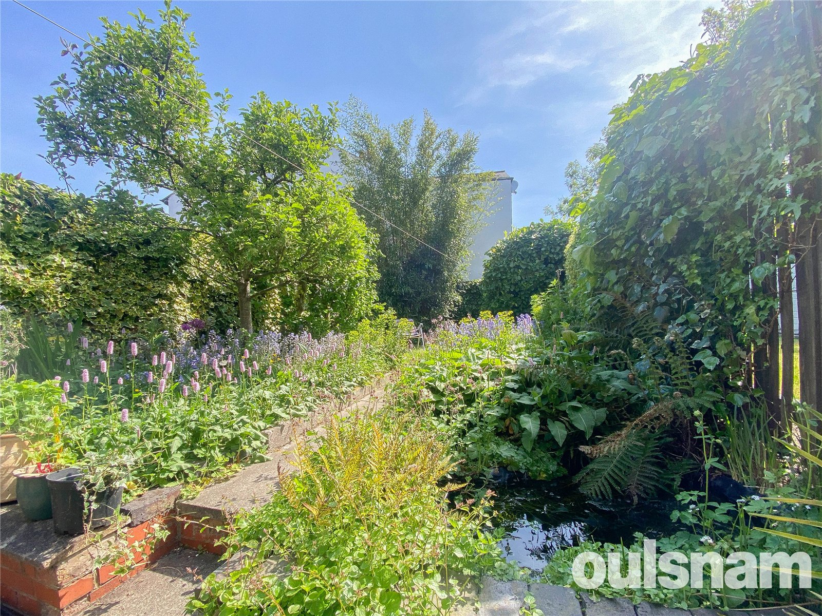 * A beautifully secluded garden with patio space, mature shrubs, a wildlife pond, an established lawn and well-stocked borders with colour from Spring to Autumn