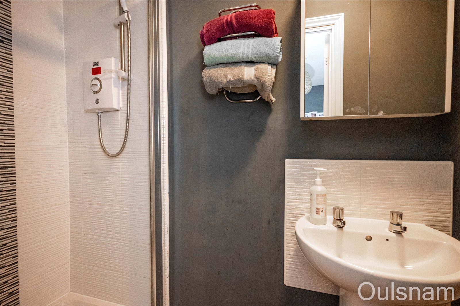 En-suite which has an enclosed shower cubicle, a wash hand basin and a low level toilet.