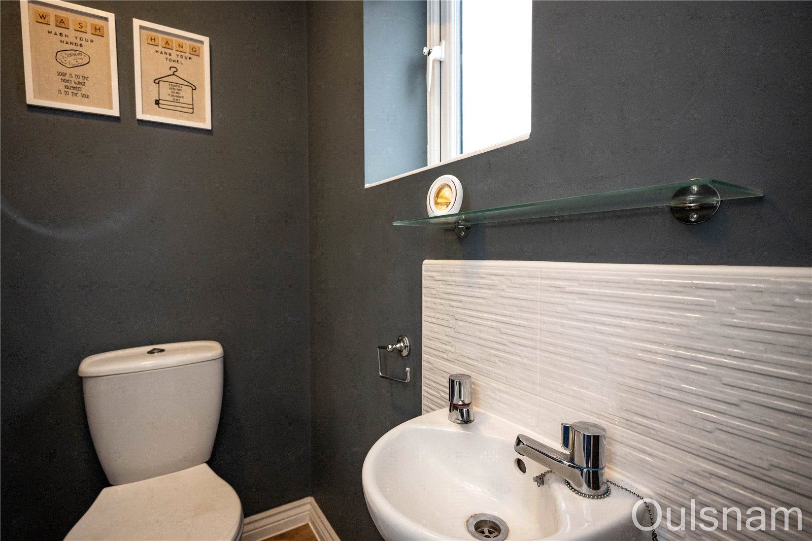 Guest w.c which has a low level toilet, a wash hand basin and a window looking out to the front.