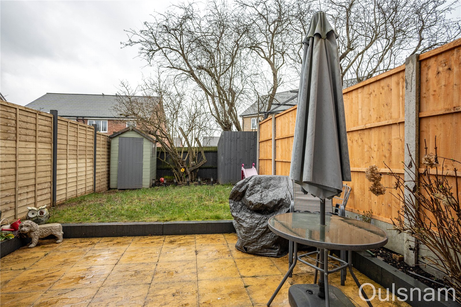 Rear garden which has a patio leading to a turfed lawn with a gate to the side giving access to the front of the property.