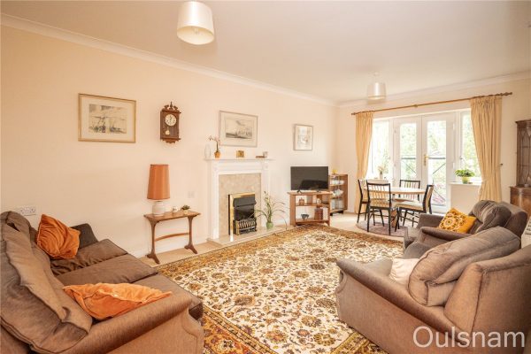 Lounge/diner which has a feature fireplace with an electric fire, a window looking out to the front and a door to the,