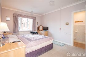 Bedroom one which has fitted wardrobes, a window looking out to the front and a door to the,