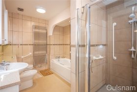 Bathroom which has a bath, an enclosed wet-room style shower and a mixture of wall mounted units with electrical connections and a mirror and base units with worktops over and an inset wash hand basin, a low level toilet and a bidet. There is "Karndean" flooring in this room as well as an extractor fan.