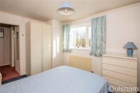 Bedroom two which has access to a storage cupboard and a window looking out to the rear.