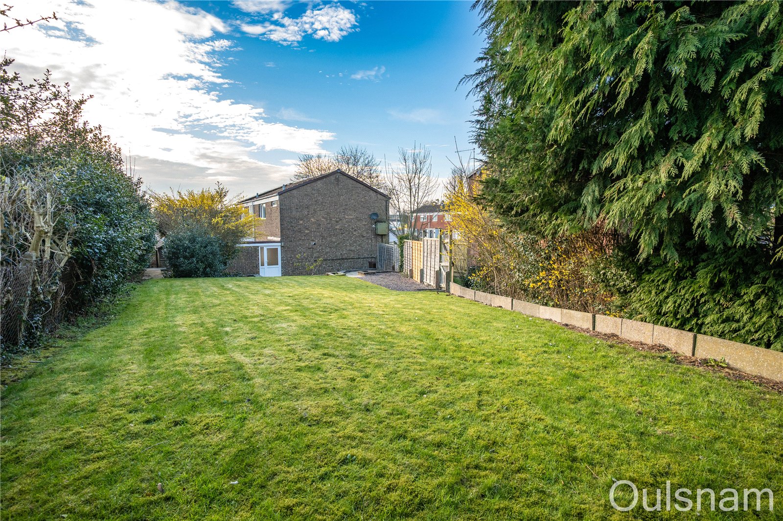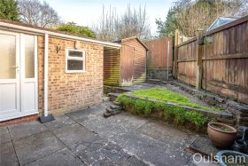 The property benefits from a large south-westerly facing side garden which comprises of extensive patio areas with steps leading to a turfed lawn with a shed behind the utility room.