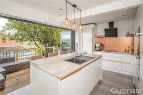 Kitchen which has a mixture of wall mounted and base units including an island with worktops over and an inset composite sink drainer. There is an integral induction hob with an extractor above, an electric oven and grill, a microwave oven, a fridge/freezer, a dishwasher and a washing machine. There is a breakfast bar and Bi-fold doors which open out to give stunning views of Bromsgrove and access to the rear garden.