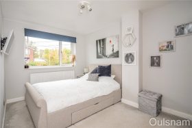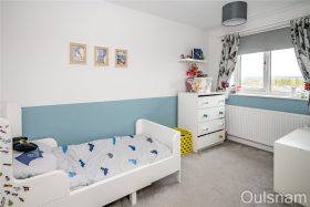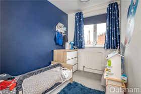 Bedroom three which has access to a storage cupboard and a window looking out to the rear.