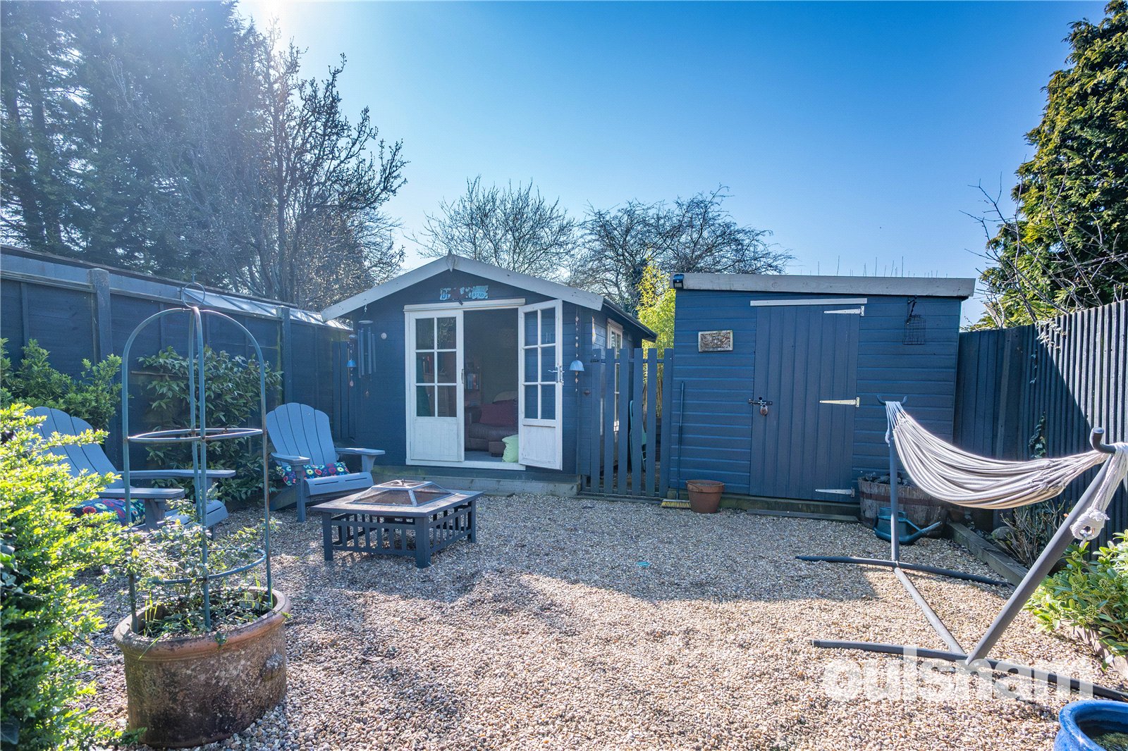 • Attractive Rear Garden with Stone Patio Area and Lawn leading to a further seating area with Garden Room and Shed