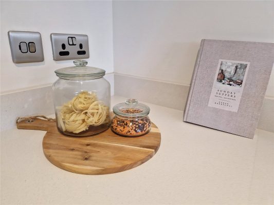 • Fitted bathroom with shower-over-bath and a white bathroom suite.