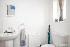 * Guest w.c which has a low level toilet, a wash hand basin and a window looking out to the front.