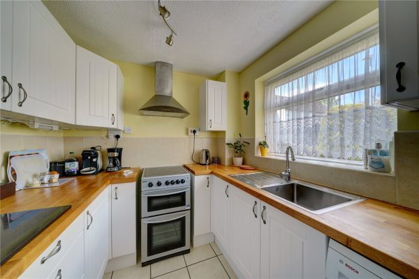 * Kitchen which has a mixture of wall mounted and base units with worktops over with an inset stainless steel sink drainer. There is an integral double electric oven and grill, electric hob, extractor hood, dishwasher and space for a fridge/freezer.