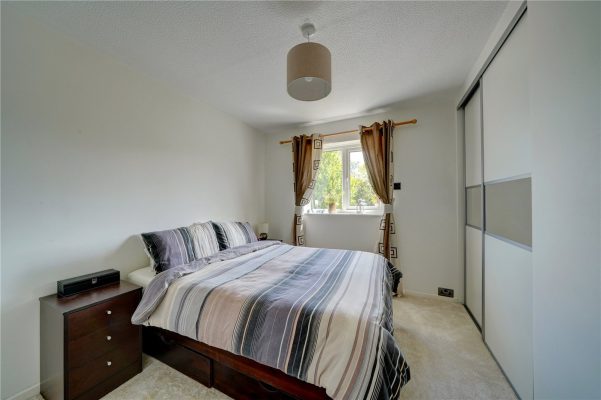 * Bedroom one which has a window looking out to the front, fitted wardrobes and a door to the