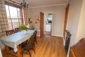 The utility provides spaces for washing machine & tumble dryer, additional storage and has a door leading out to the rear garden. The dining room has wood effect flooring, original panelled crockery store, cast iron fireplace and mantel, ceiling coving and panelled door to the kitchen.