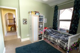 The spacious first floor landing leads to three double bedrooms with bedroom one having a whitewashed wooden floor, two sash windows, recessed open wardrobe and door to en-suite shower room with white suite.