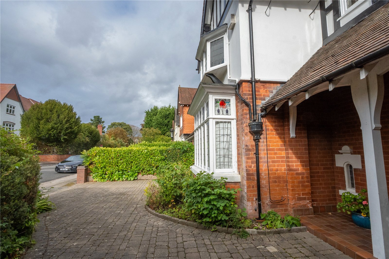 The garage retains the original frontage and now has a perspex roof.