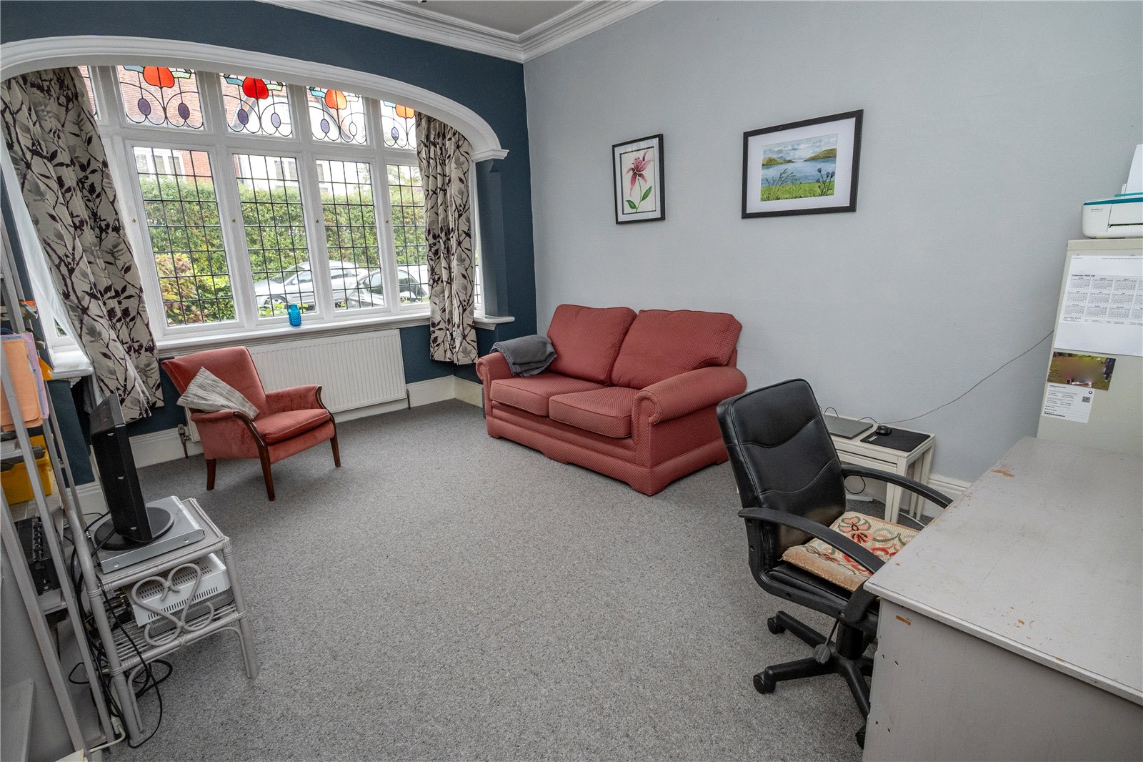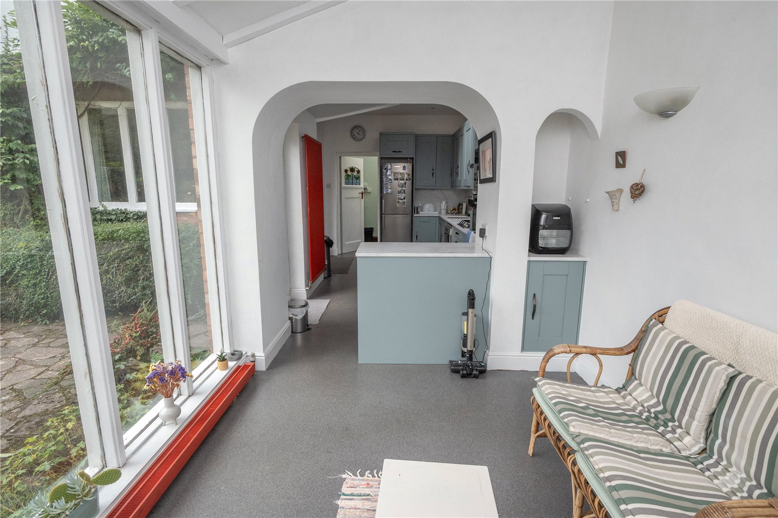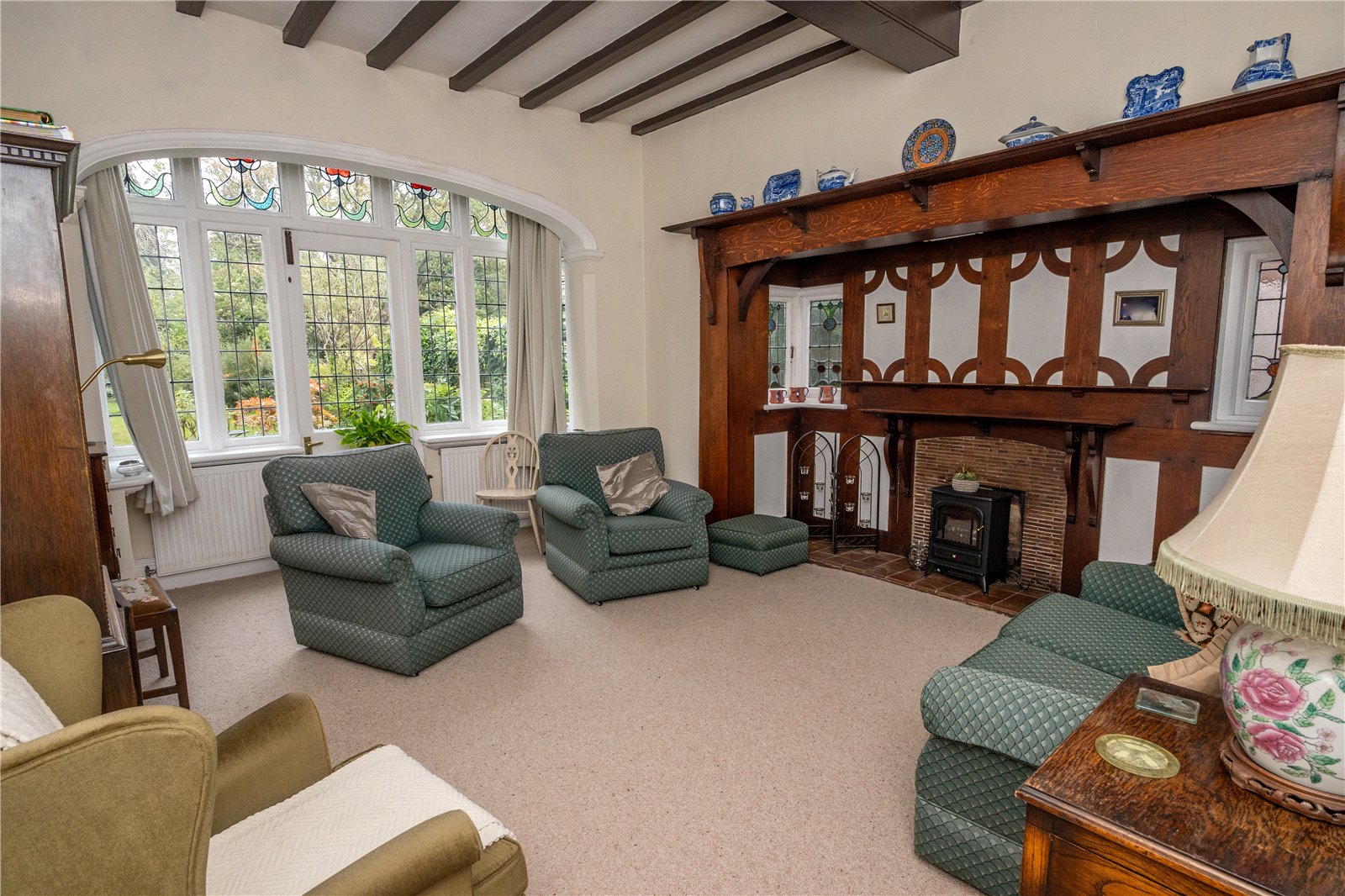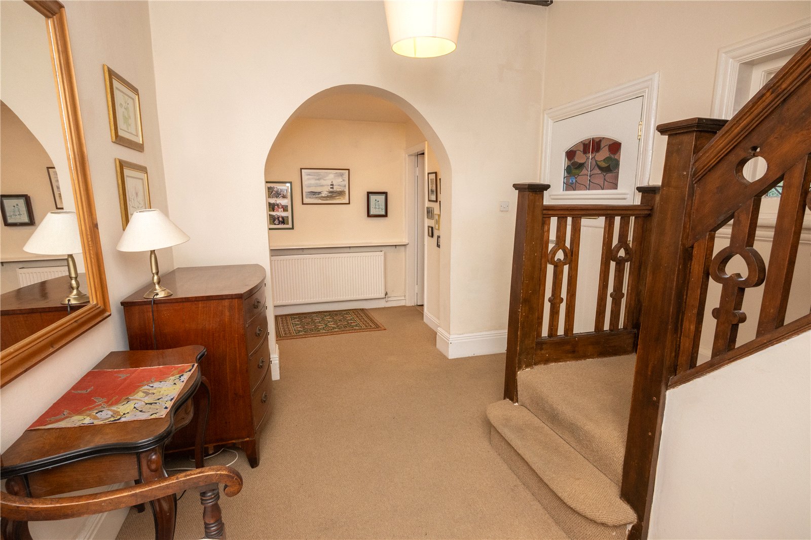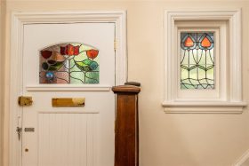 The front reception room has a bay window to with stained glass, coving and archway. The rear reception room has the attractive Inglenook fireplace with feature stained glass windows, there is a bay window with door to the rear garden, also with with stained glass and archway.