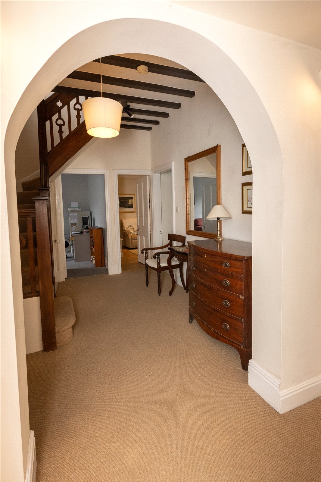 The first floor landing has doors to the bedrooms and bathroom.