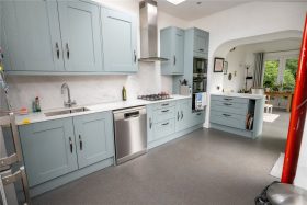The kitchen was re fitted in 2020 and comprises a range of base and drawer units, sink unit, working surfaces, wall units, integrated oven, microwave and gas hob with cooker hood over. Space for a dishwasher and fridge freezer. The sun room leads off the kitchen and has a large window over looking the garden and double doors.