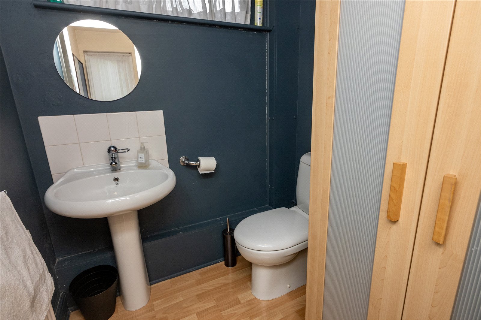 The family bathroom has a window to the side, tiled walls and comprises a panelled bath, low level wc and pedestal wash hand basin and airing cupboard.