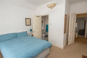 Bedroom One has a bay window to the rear, window to the side and fitted wardrobes. Bedroom Two has a bow window to the front and an En Suite shower room having a window to the side, low level wc., wash hand basin and shower cubicle. Bedroom Three over looks the rear garden and has a fitted cupboard housing the central heating boiler. Bedroom Four faces the front.