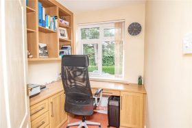 * Bedroom four which has fitted office furniture and a window looking out to the front